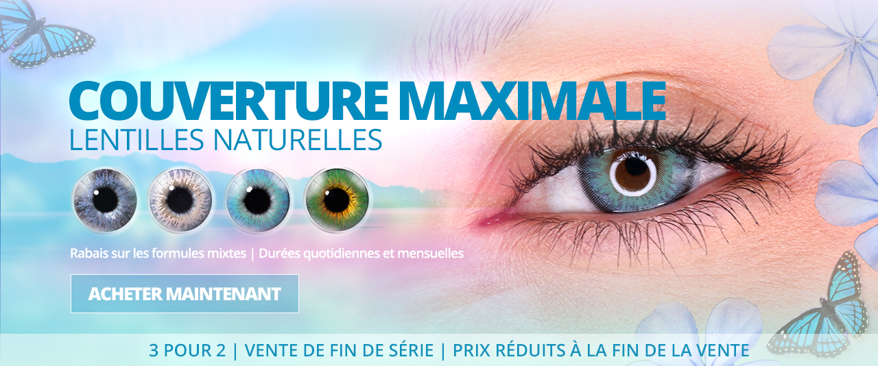 Grâce à notre large choix de paires au design naturel, notre gamme de lentilles cosmétiques inclut également tout un éventail d’effets et de teintes. La coloration des lentilles est conçue pour copier l’apparence d’une iris, en plus d’y ajouter un effet supplémentaire. Découvrez la liste des lentilles de couleurs naturelles que nous avons en stock :