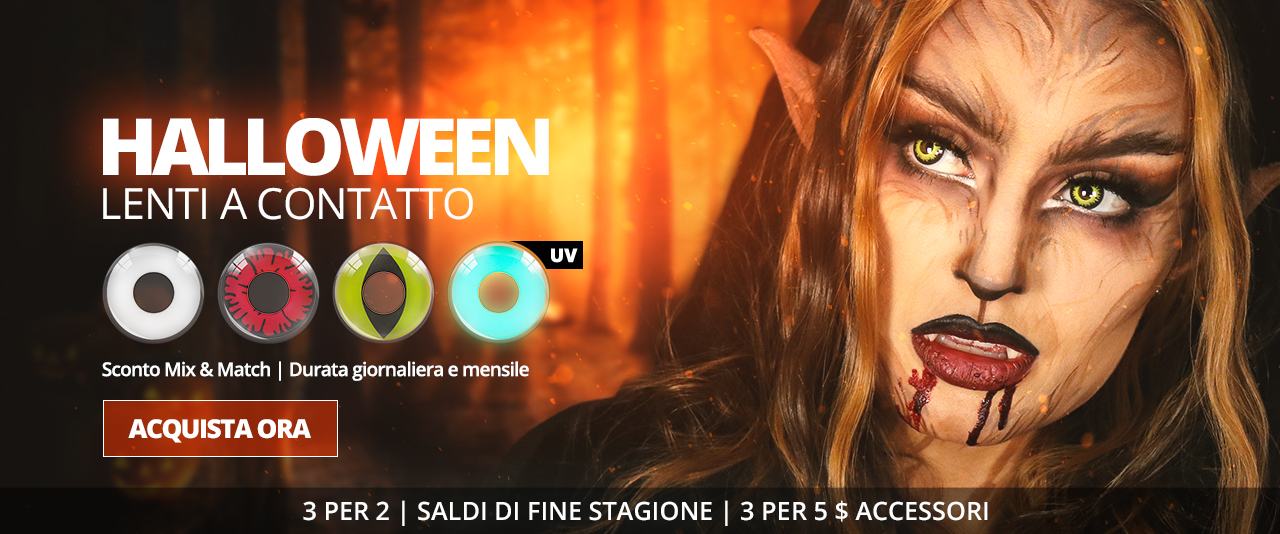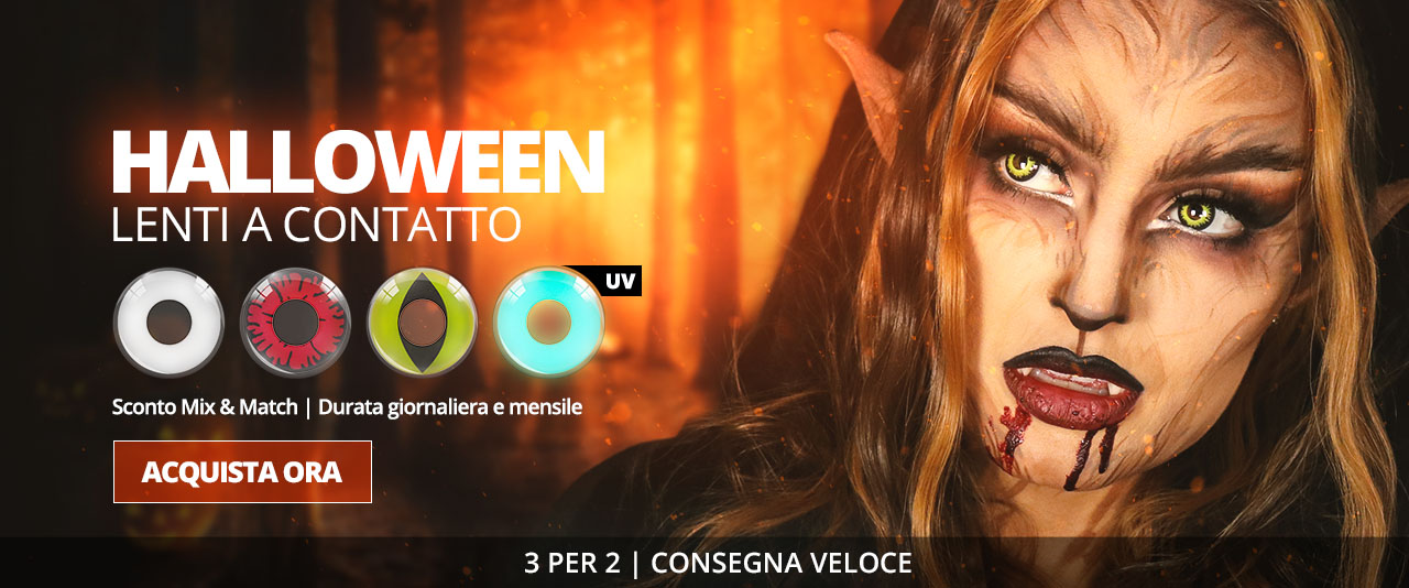 Halloween è uno di quegl’eventi che non possono assolutamente mai essere dimenticati! Ed è proprio per questo che vogliamo portare il livello del vostro costume alle stelle, cosicché ne potrete godere al massimo in vista di tale festività, le nostre lenti a contatto Halloween di sicuro renderanno qualunque costume e travestimento inimitabile. A prescindere dalla tematica Zombie, Lupo Mannaro, Vampiro o Demone delle lenti da integrare al vostro make-up horror, siamo sicuri che qualunque delle lenti effetti speciali sembrerà incredibilmente grandiosa.